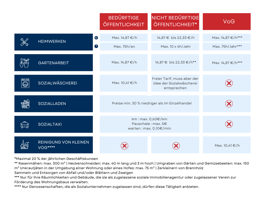 Ausnahme: Wenn Sie im Rahmen des Experimentalfonds der König-Baudouin-Stiftung Dienstleistungen im Nahbereich anbieten, kann die Subvention auch Arbeitnehmern gewährt werden, die für nicht bedürftige Personen Leistungen erbringen.