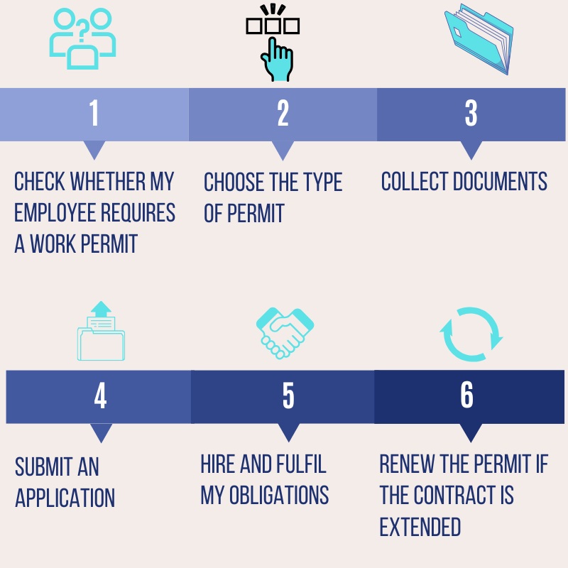 There are different kinds of permit, depending on the job performed and the duration of the employment contract. The procedure for obtaining the necessary documentation will be different.